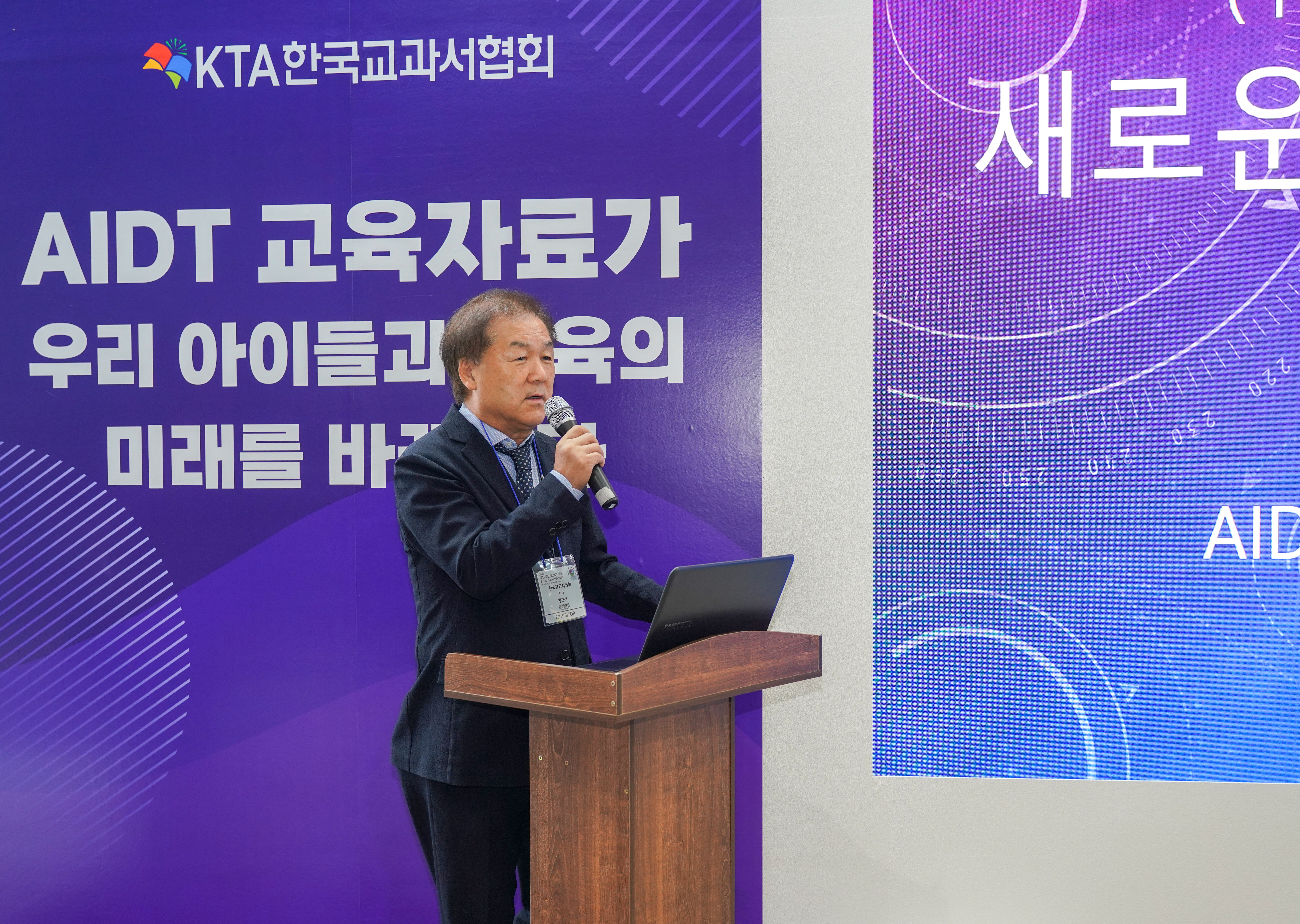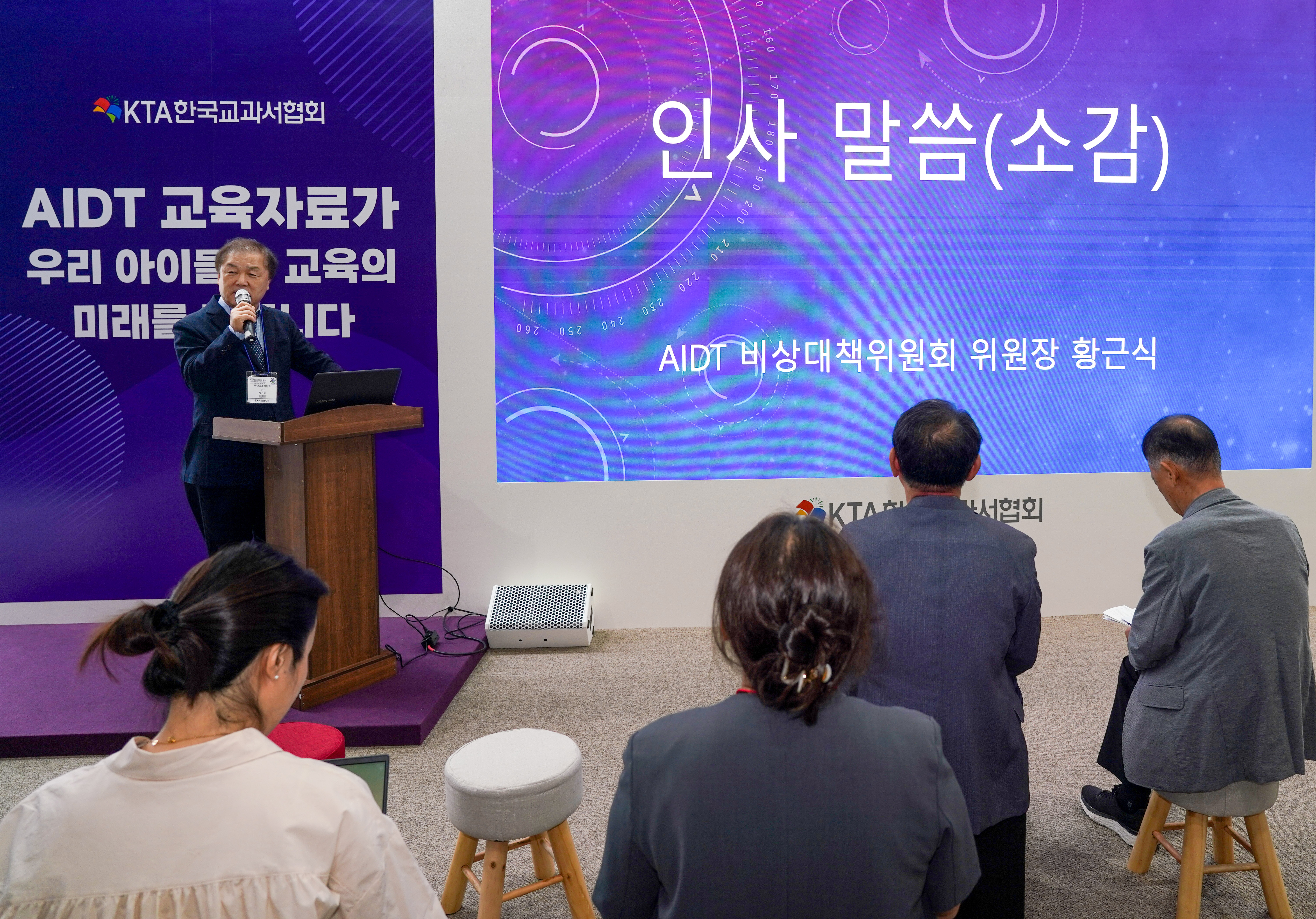 | 제목 | 황근식 한국교과서협회 AIDT비상대책위원회 위원장이 AIDT 교육자료 전시관 세미나에 참석하여 새로운 공동브랜드명을 발표하고 있다.(2025-09-18) | ||